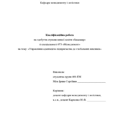 Дипломна робота 2026/03/12Управління адаптацією підприємства до глобальних викликів
