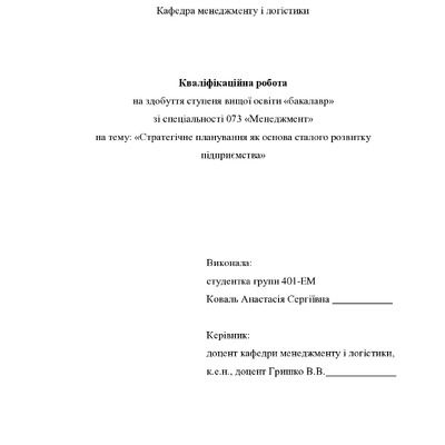 Дипломна робота 2026/03/16Стратегічне планування як основа сталого розвитку підприємства