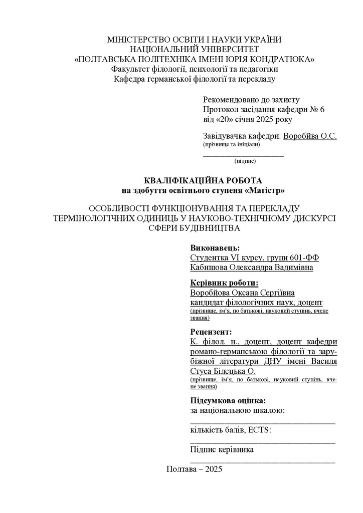 Дипломна робота 2025/03/17Особливості перекладу англомовних текстів галузі будівництва та архітектури українською мовою