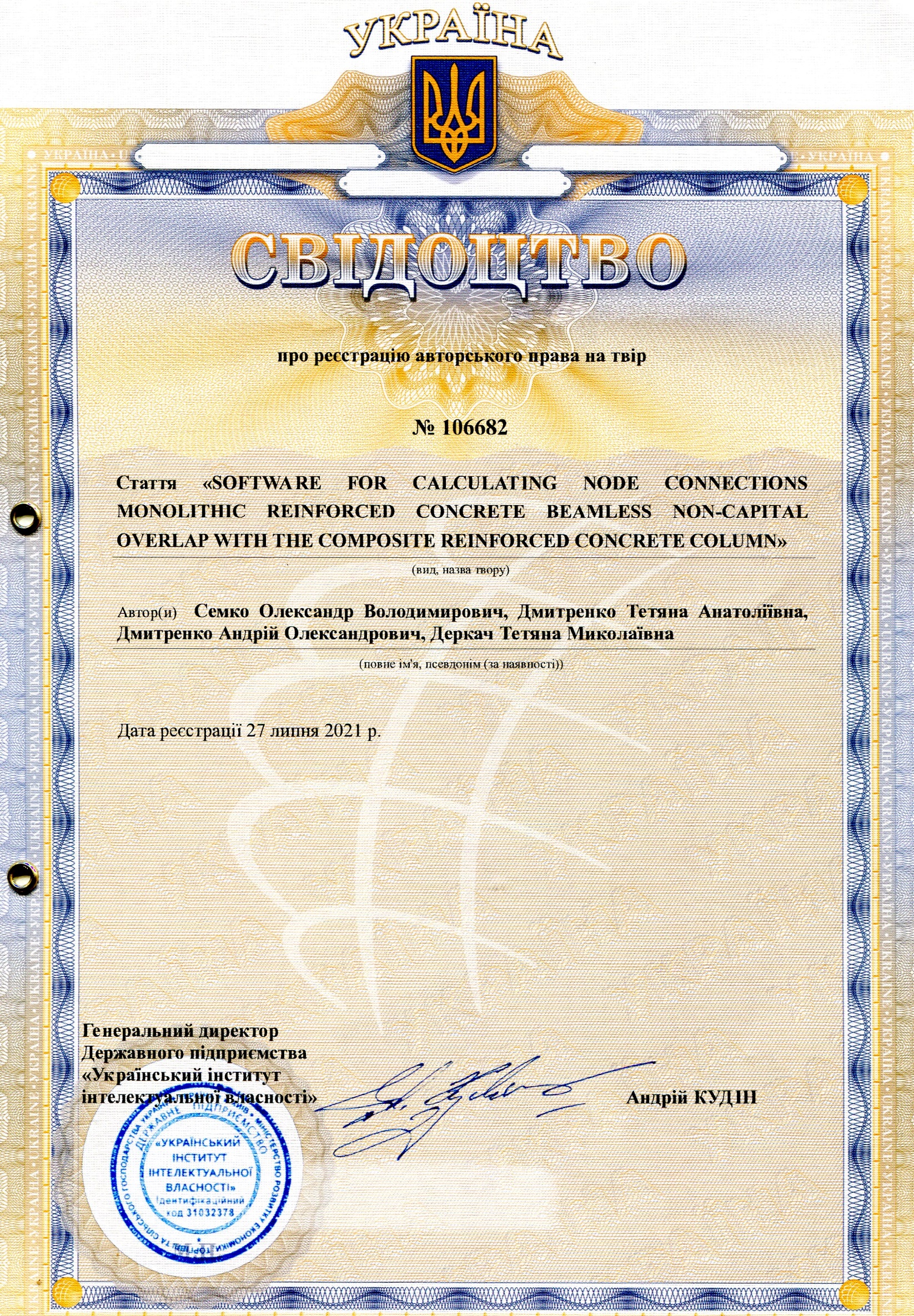 Software for calculating node connections monolithic reinforced concrete beamless non-capital overlap with the composite reinforced concrete column : Свідоцтво про реєстрацію авт. права