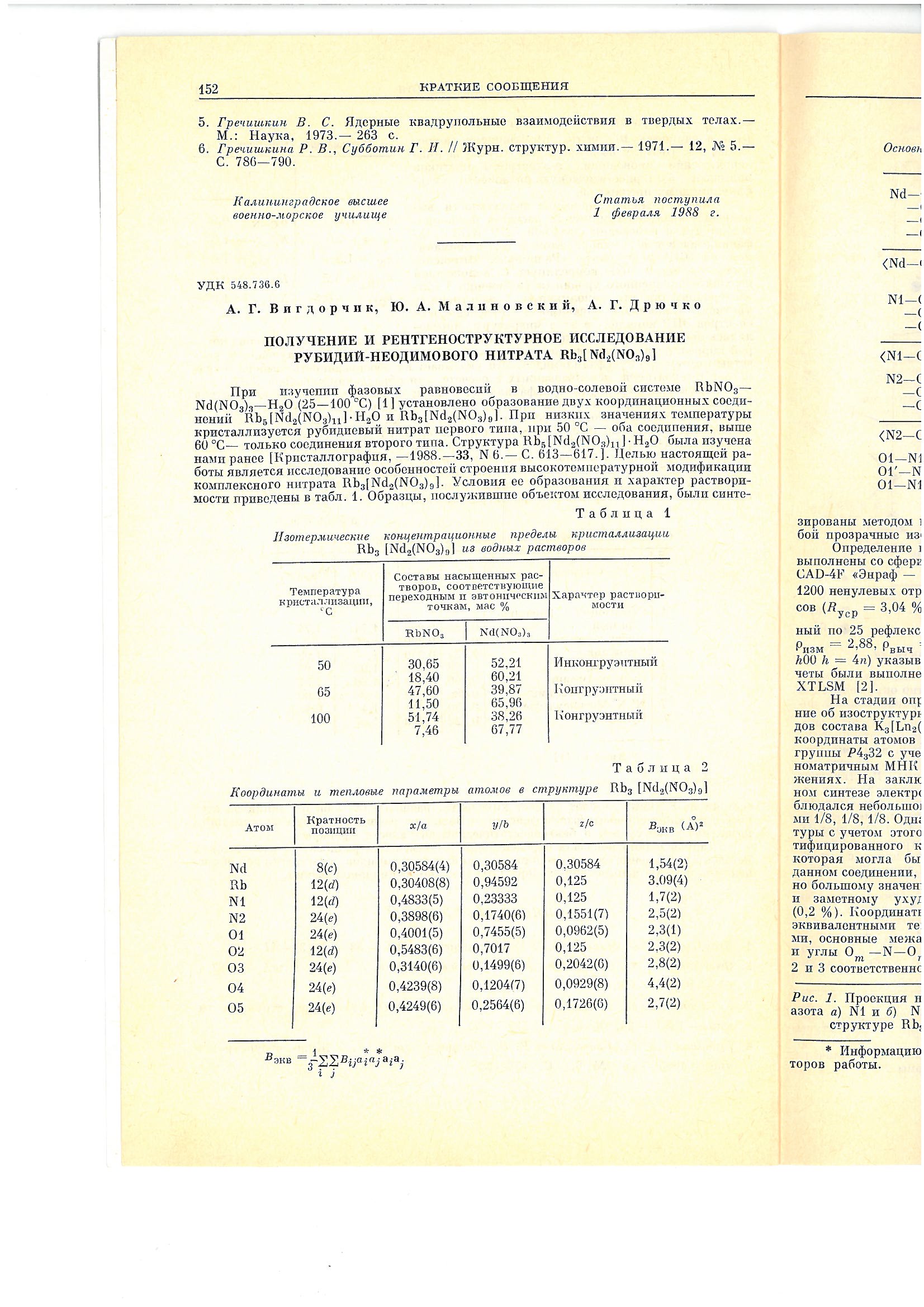 Получение и рентгеноструктурное исследование рубидий-неодимового нитрата Rb3[Nd2(NO3)9]