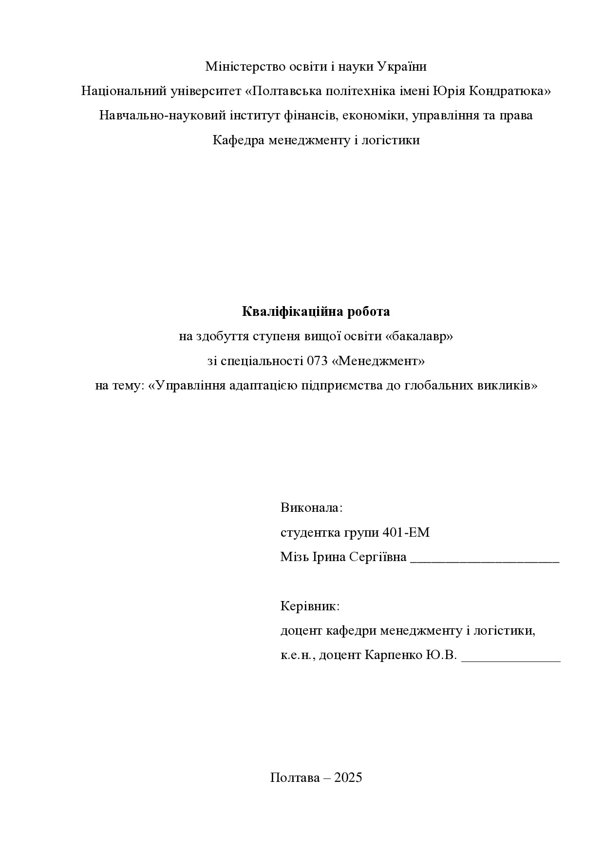 Кваліфікаційна робота здобувача вищої освіти
