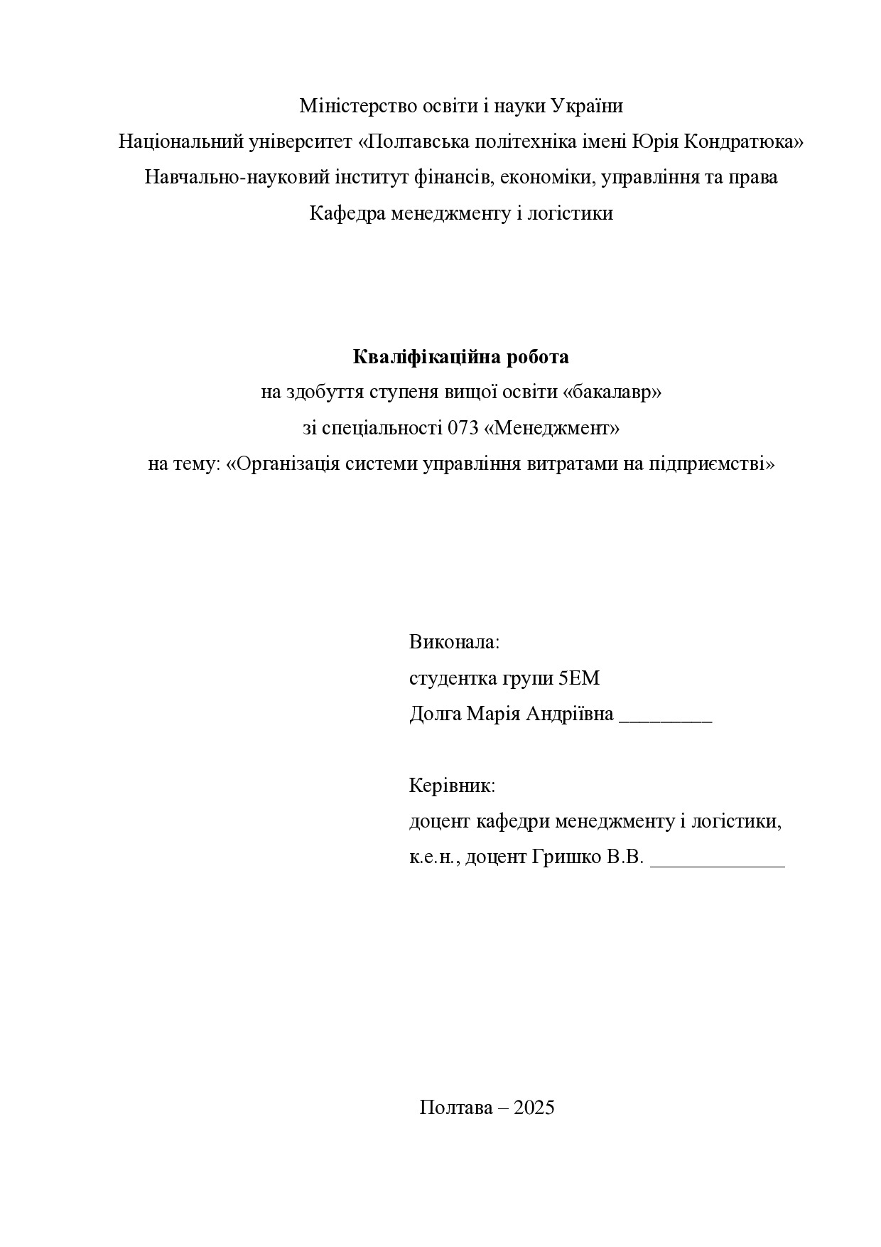 Кваліфікаційна робота здобувача вищої освіти