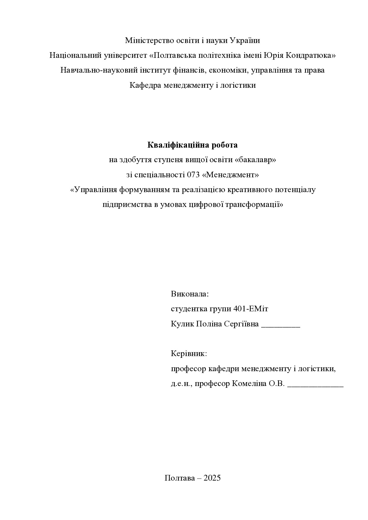 Управління формуванням та реалізацією креативного потенціалу підприємства в умовах цифрової трансформації
