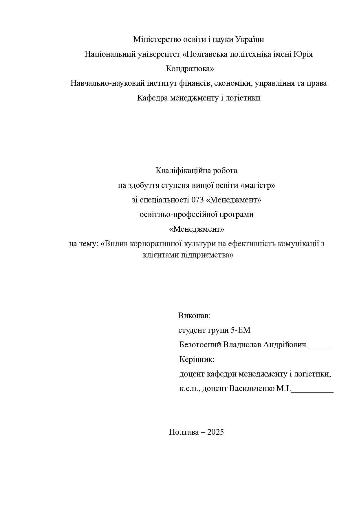 Кваліфікаційна робота здобувача вищої освіти