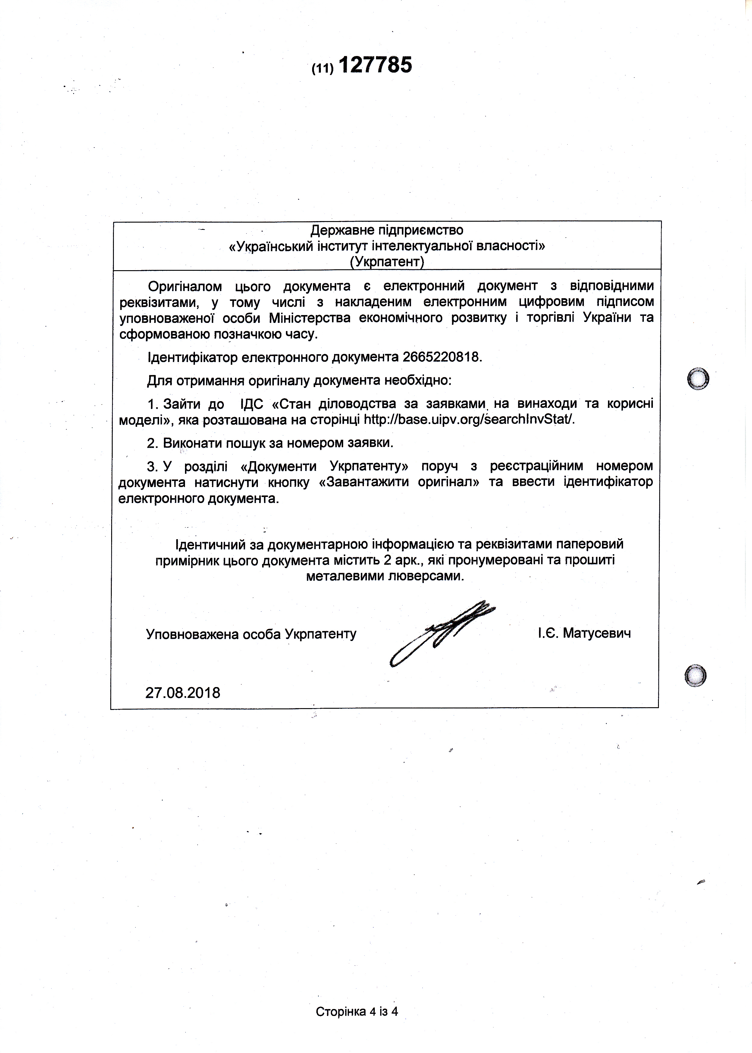 Патент № 127785 на корисну модель. Засіб кислотний для миття та дезінфекції доїльних апаратів методом безрозбірного циркуляційного миття