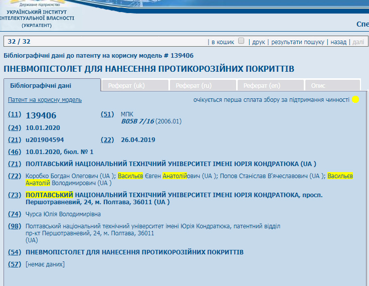 Пневмопістолет для нанесення протикорозійних покриттів