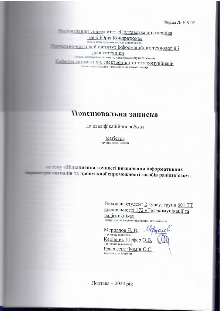 Дипломна робота 2026/04/08Підвищення точності визначення інформативних параметрів сигналів та пропускної спроможності засобів радіозв’язку