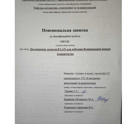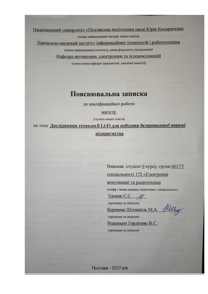 Дипломна робота 2026/04/08Дослідження технології Li-Fi для побудови безпроводової мережі підприємства