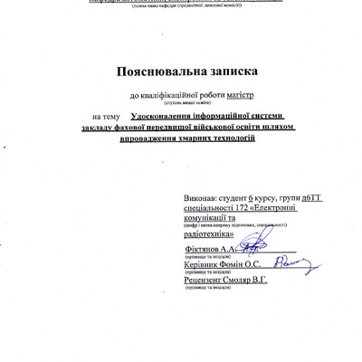 Дипломна робота 2026/04/08Удосконалення інформаційної системи закладу фахової передвищої військової освіти шляхом впровадження хмарних технологій