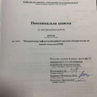 Дипломна робота 2026/04/08Модернізація інфокомунікаційної системи підприємства на основі технології PON