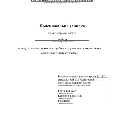 Дипломна робота 2026/04/08Система оцінки якості роботи підприємства з використанням елементів штучного інтелекту