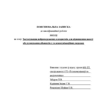 Дипломна робота 2026/04/08Застосування нейромережевих алгоритмів для підвищення якості обслуговування абонентів у телекомунікаційних мережах