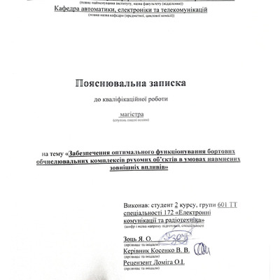 Дипломна робота 2026/04/08Забезпечення оптимального функціонування бортових обчислювальних комплексів рухомих об'єктів в умовах навмисних зовнішніх впливів