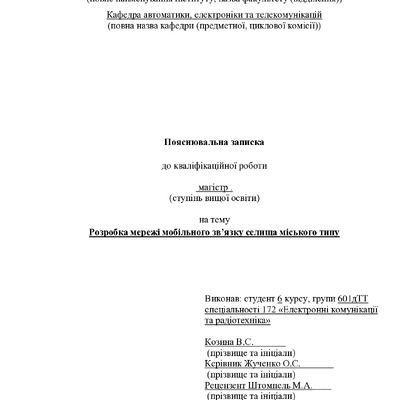 Дипломна робота 2026/04/08Розробка мережі мобільного зв’язку селища міського типу