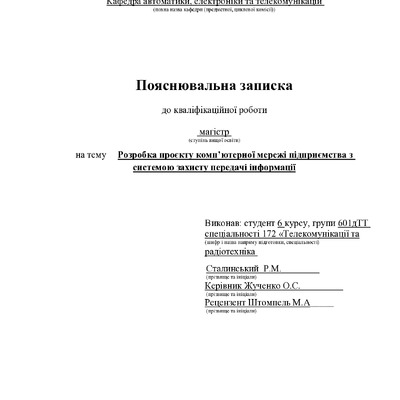 Стаття 2026/04/09Розробка проєкту комп’ютерної мережі підприємства з системою захисту передачі інформації