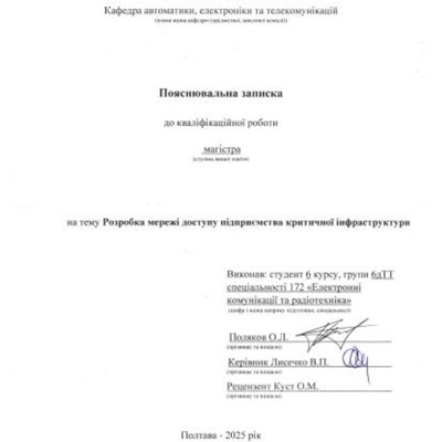 Дипломна робота 2026/04/08Розробка мережі доступу підприємства критичної інфраструктури