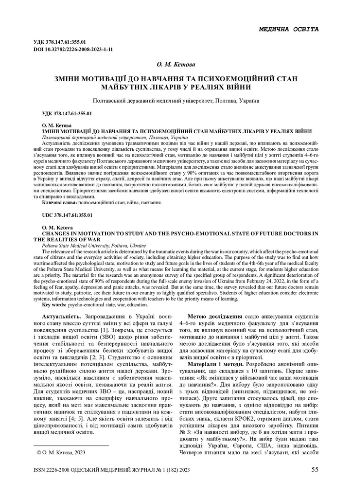 Зміни мотивації до навчання та психоемоційний стан майбутніх лікарів у реаліях війни
