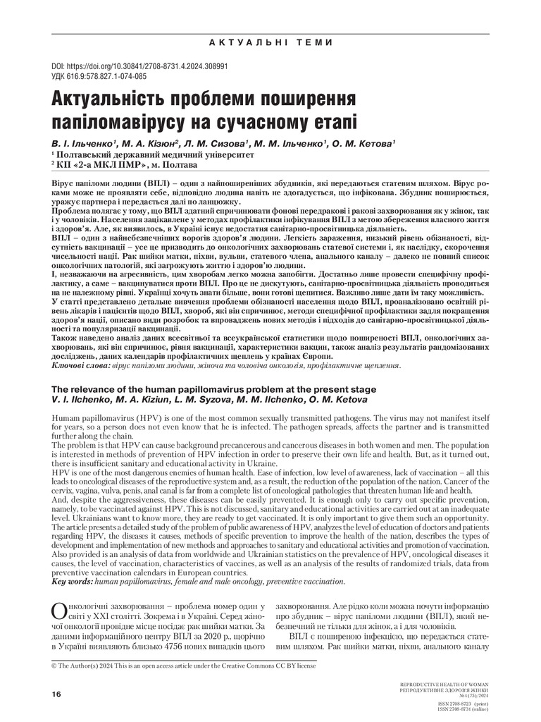 Стаття 2026/04/03Актуальність проблеми поширення папіломавірусу на сучасному етапі
