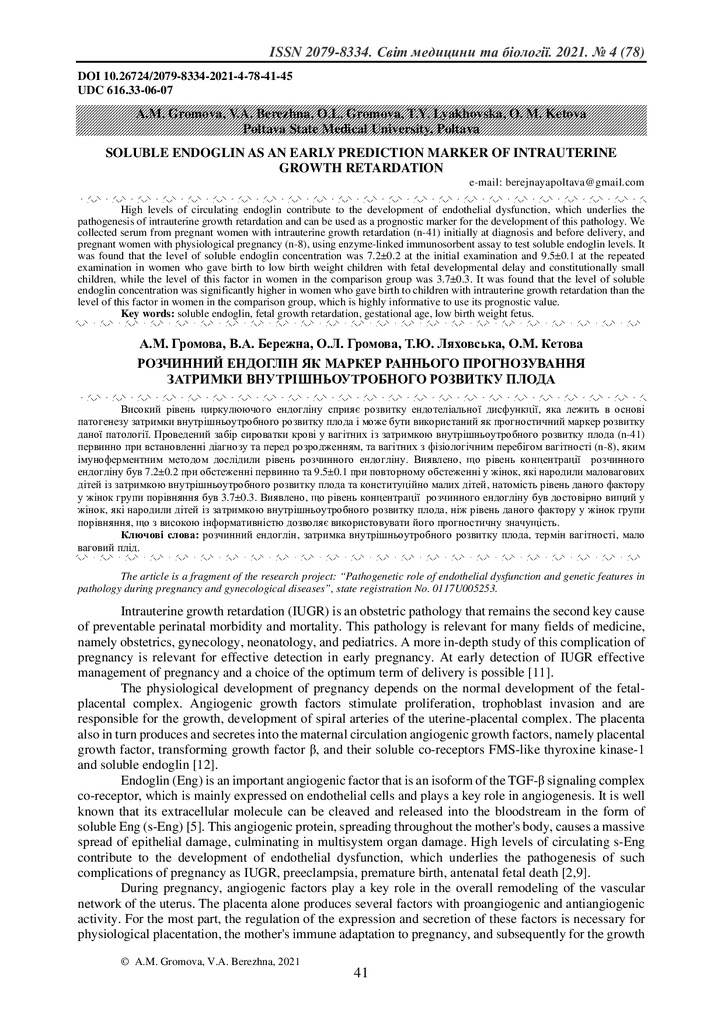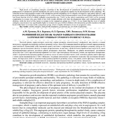 Розчинний ендоглін як маркер раннього прогнозування затримки внутрішньоутробного розвитку плода