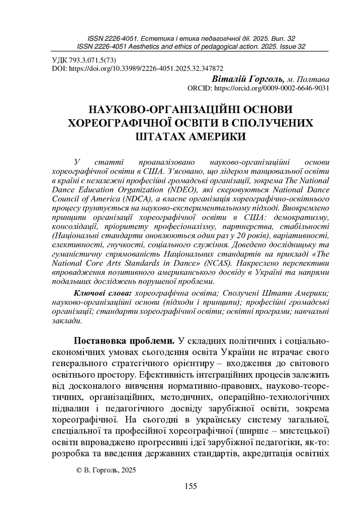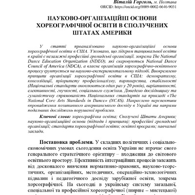 Стаття 2026/04/07Науково-організаційні основи хореографічної освіти в Сполучених Штатах Америки