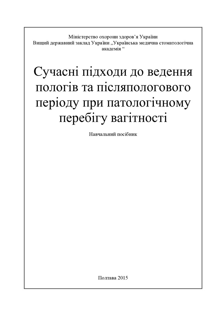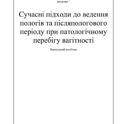 Книга 2026/04/08Сучасні підходи до ведення пологів та післяпологового періоду при патологічному перебігу вагітності