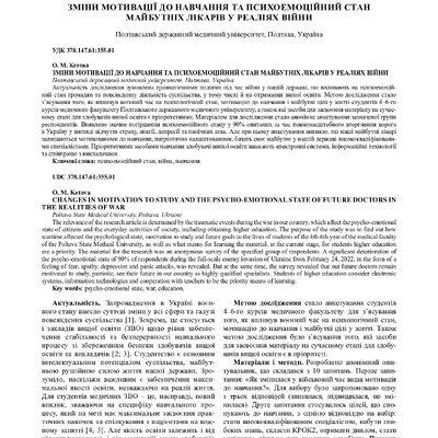 Стаття 2026/04/02Зміни мотивації до навчання та психоемоційний стан майбутніх лікарів у реаліях війни