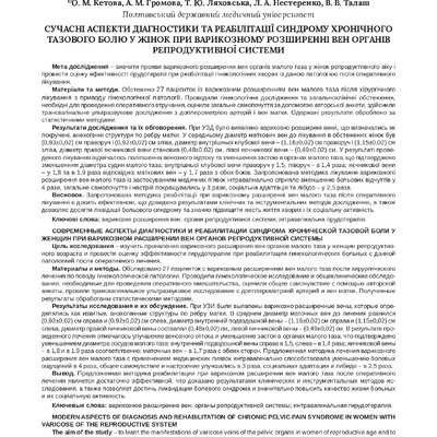 Сучасні аспекти діагностики та реабілітації синдрому хронічного тазового болю у жінок при варикозному розширенні вен органів репродуктивної системи