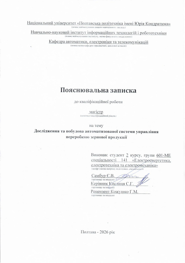 Дипломна робота 2026/03/30Дослідження та побудова автоматизованої системи управління переробкою зернової продукції