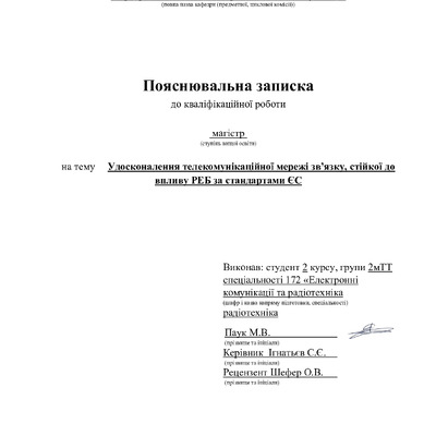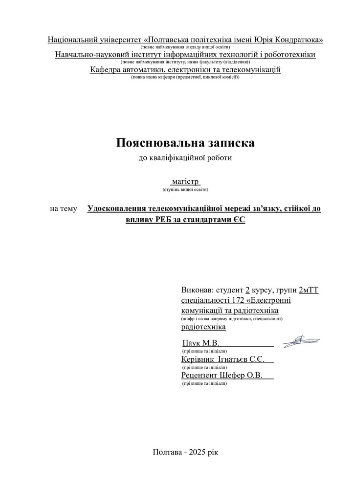 Дипломна робота 2026/04/01Удосконалення телекомунікаційної мережі зв’язку, стійкої до впливу РЕБ за стандартами ЄС