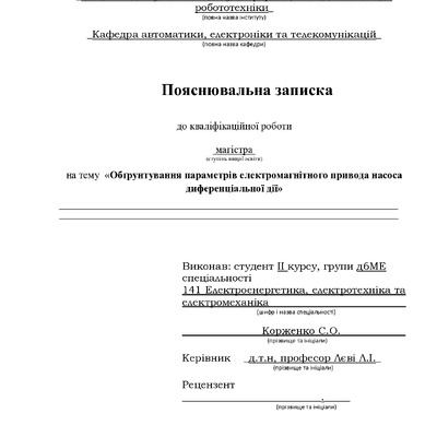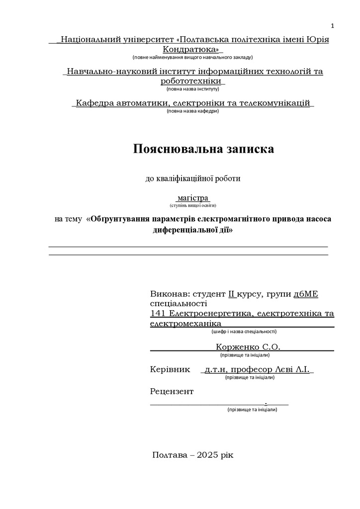 Дипломна робота 2026/04/01Обґрунтування параметрів електромагнітного привода насоса диференціальної дії