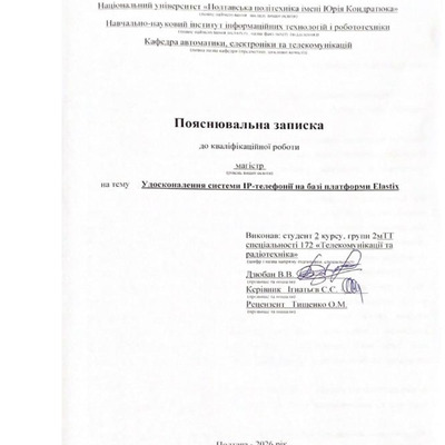 Дипломна робота 2026/03/31Удосконалення системи ІР-телефонії на базі платформи Elastix