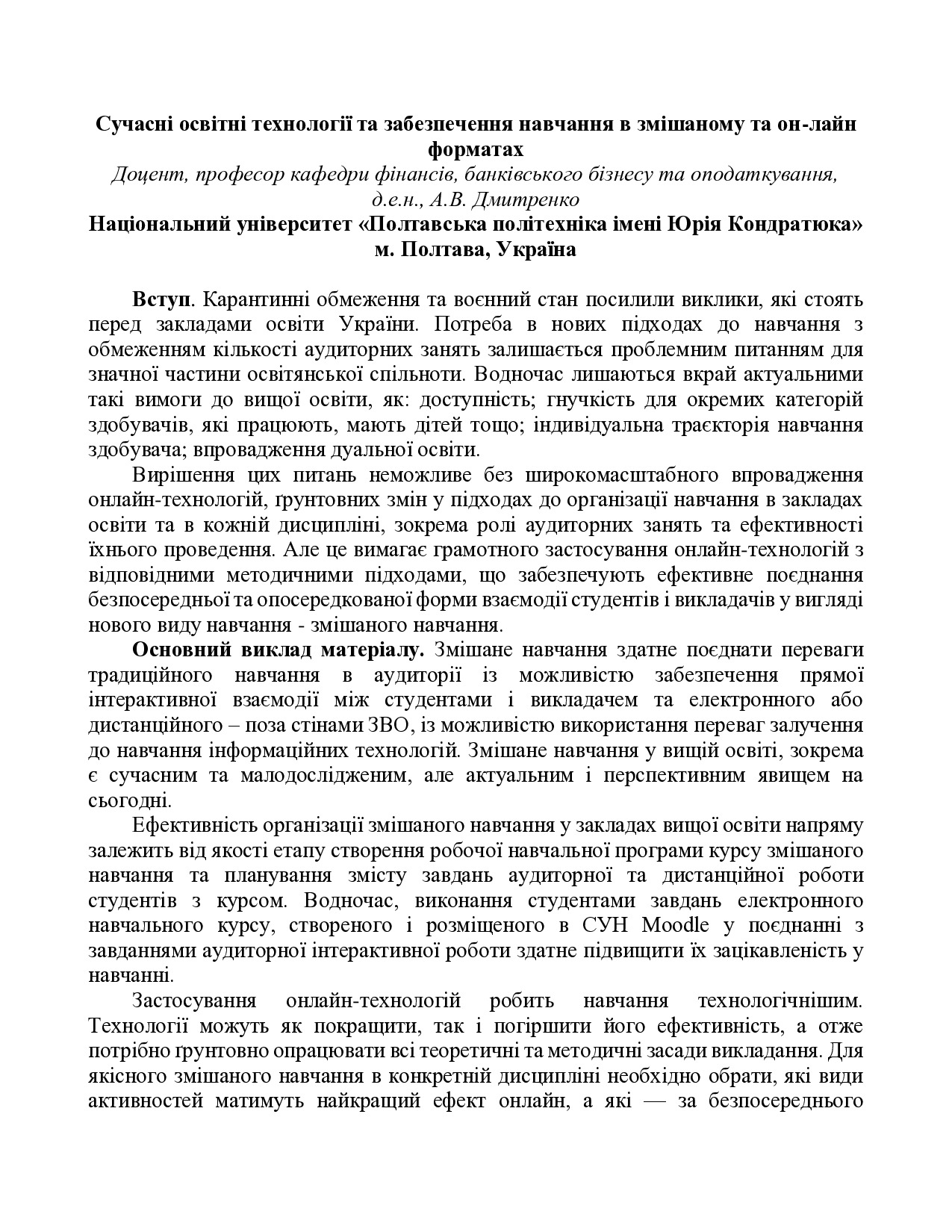 Сучасні освітні технології та забезпечення навчання в змішаному та он-лайн форматах