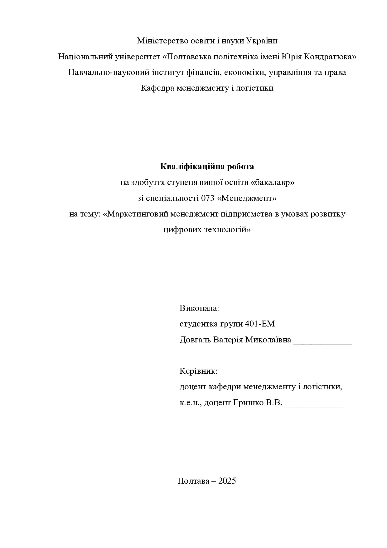 Кваліфікаційна робота здобувача вищої освіти