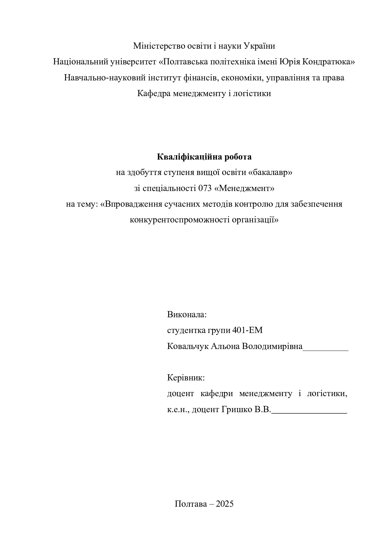 Кваліфікаційна робота здобувача вищої освіти