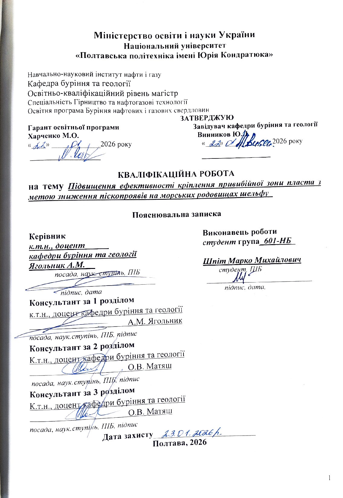 Підвищення ефективності кріплення привибійної зони пласта з метою зниження піскопроявів на морських родовищах шельфу