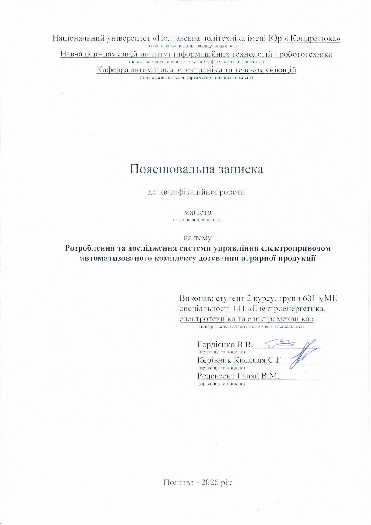 Розроблення та дослідження системи управління електроприводом автоматизованого комплексу дозування аграрної продукції