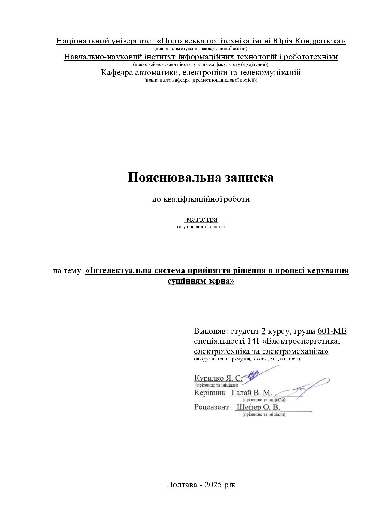 Інтелектуальна система прийняття рішення в процесі керування сушінням зерна