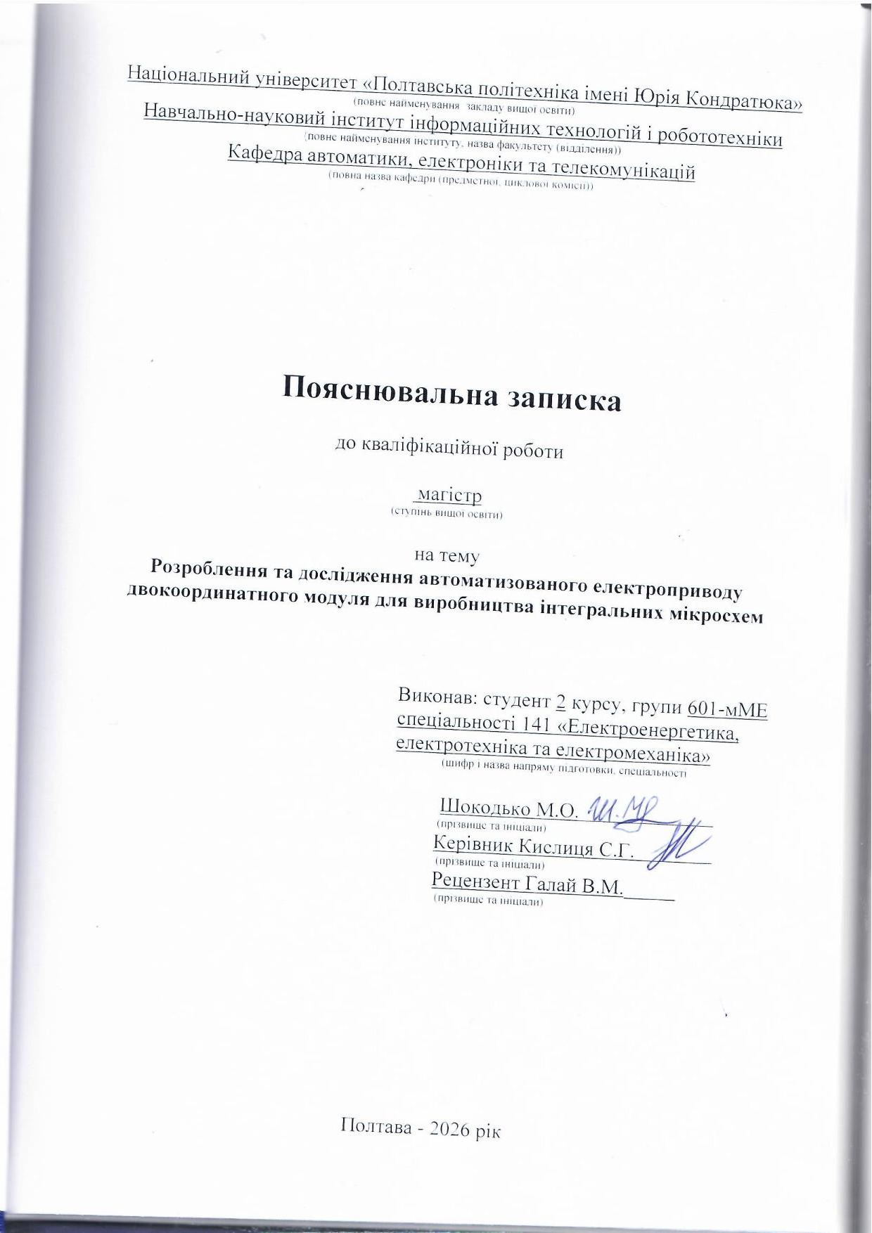 Розроблення та дослідження автоматизованого електроприводу двокоординатного модуля для виробництва інтегральних мікросхем
