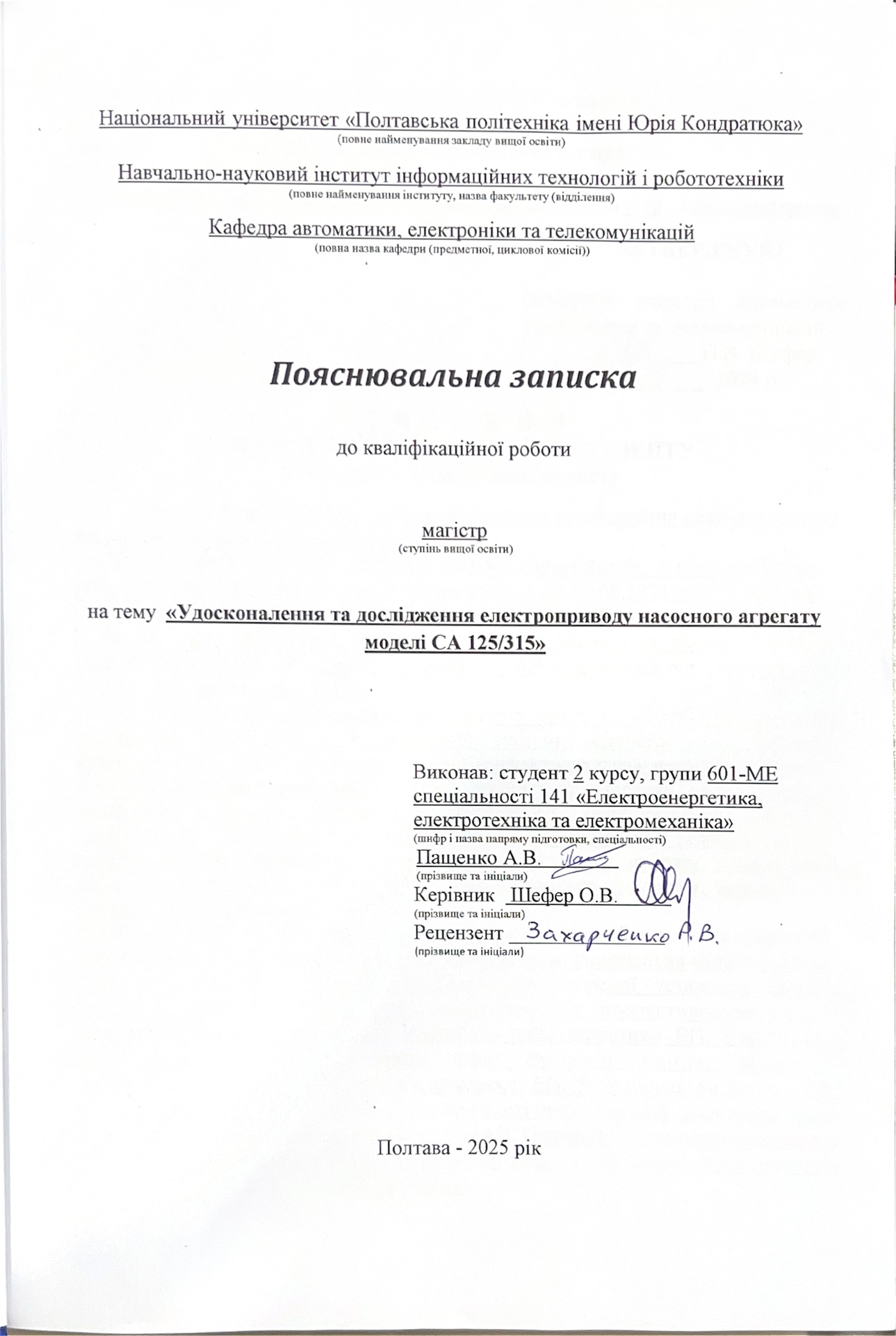 Удосконалення та дослідження електроприводу насосного агрегату моделі СА 125/315