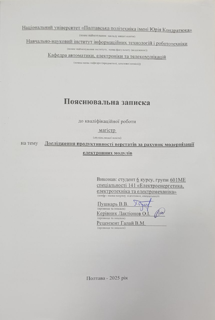 Дослідження продуктивності верстатів за рахунок модернізації електронних модулів