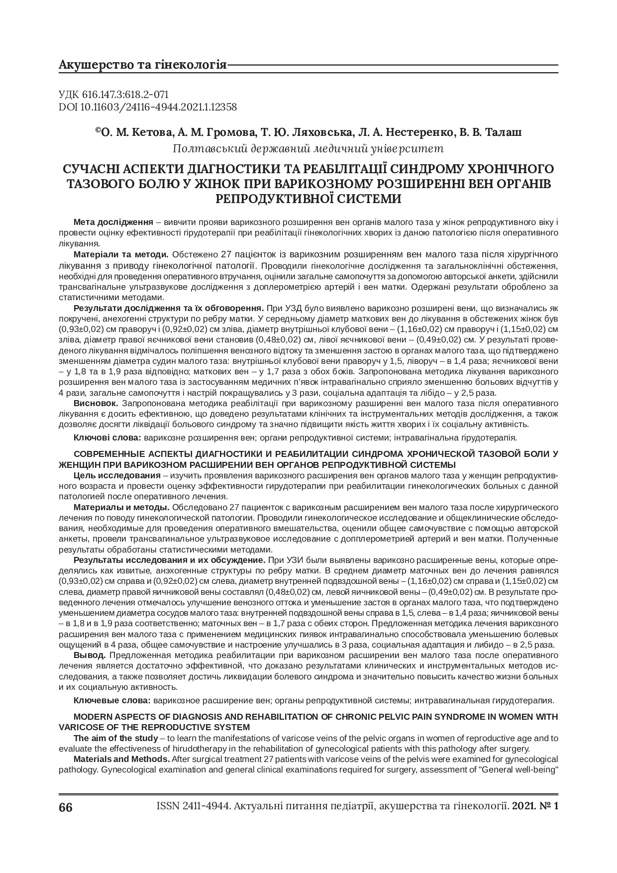Сучасні аспекти діагностики та реабілітації синдрому хронічного тазового болю у жінок при варикозному розширенні вен органів репродуктивної системи