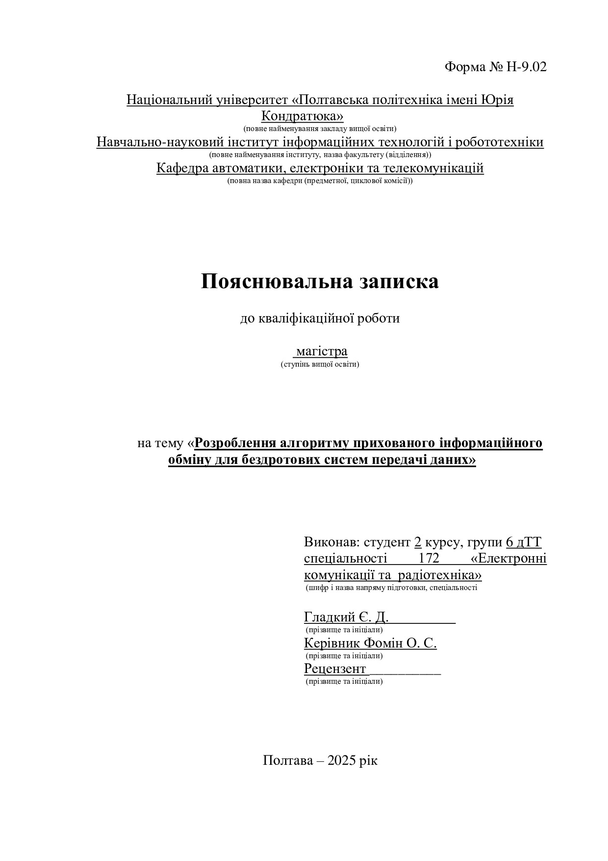 Розроблення алгоритму прихованого інформаційного обміну для бездротових систем передачі даних