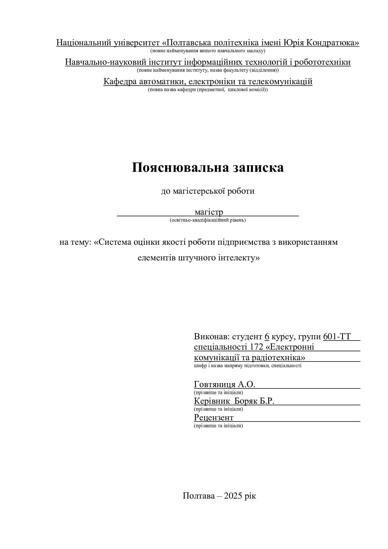 Система оцінки якості роботи підприємства з використанням елементів штучного інтелекту