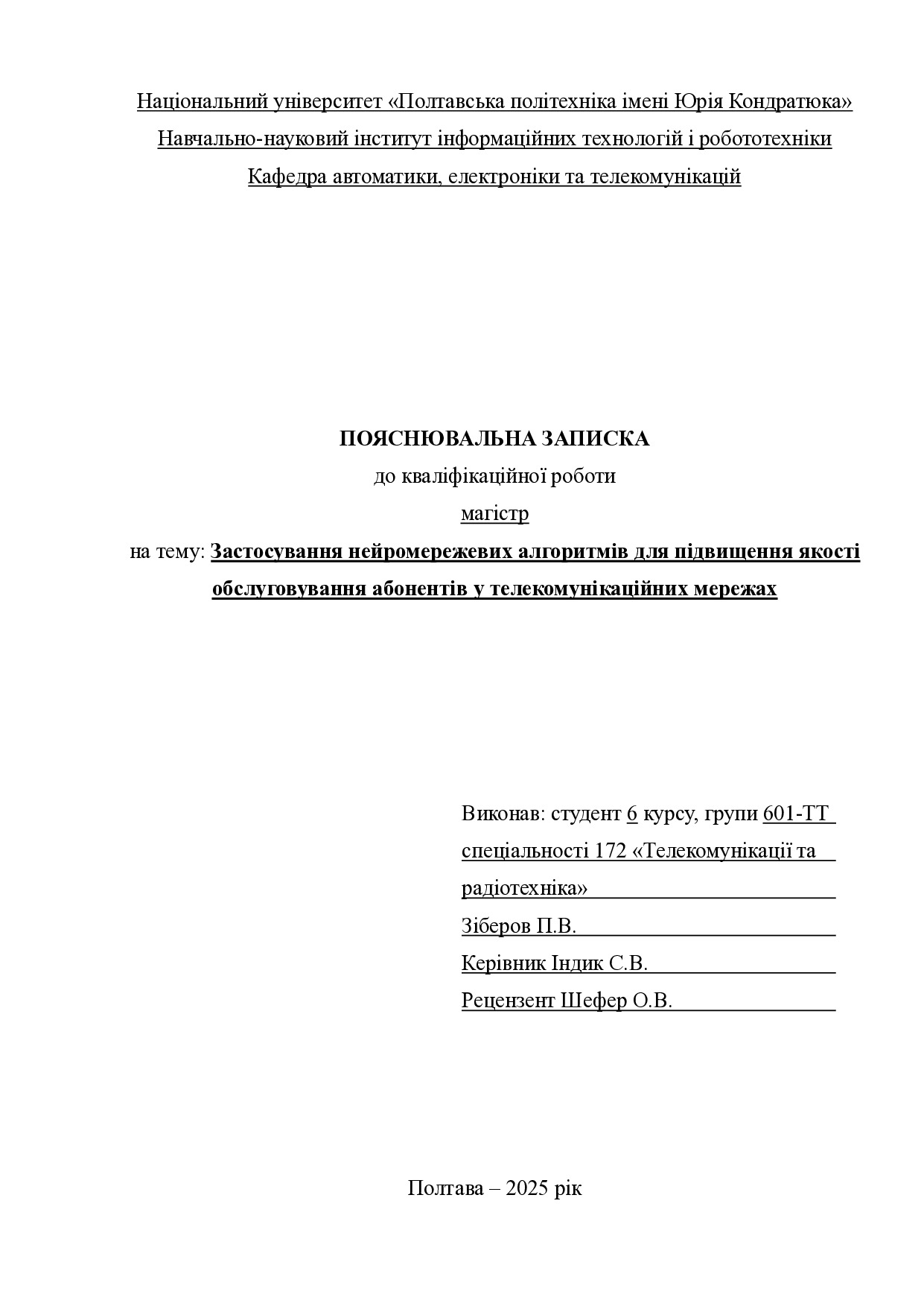 Застосування нейромережевих алгоритмів для підвищення якості обслуговування абонентів у телекомунікаційних мережах