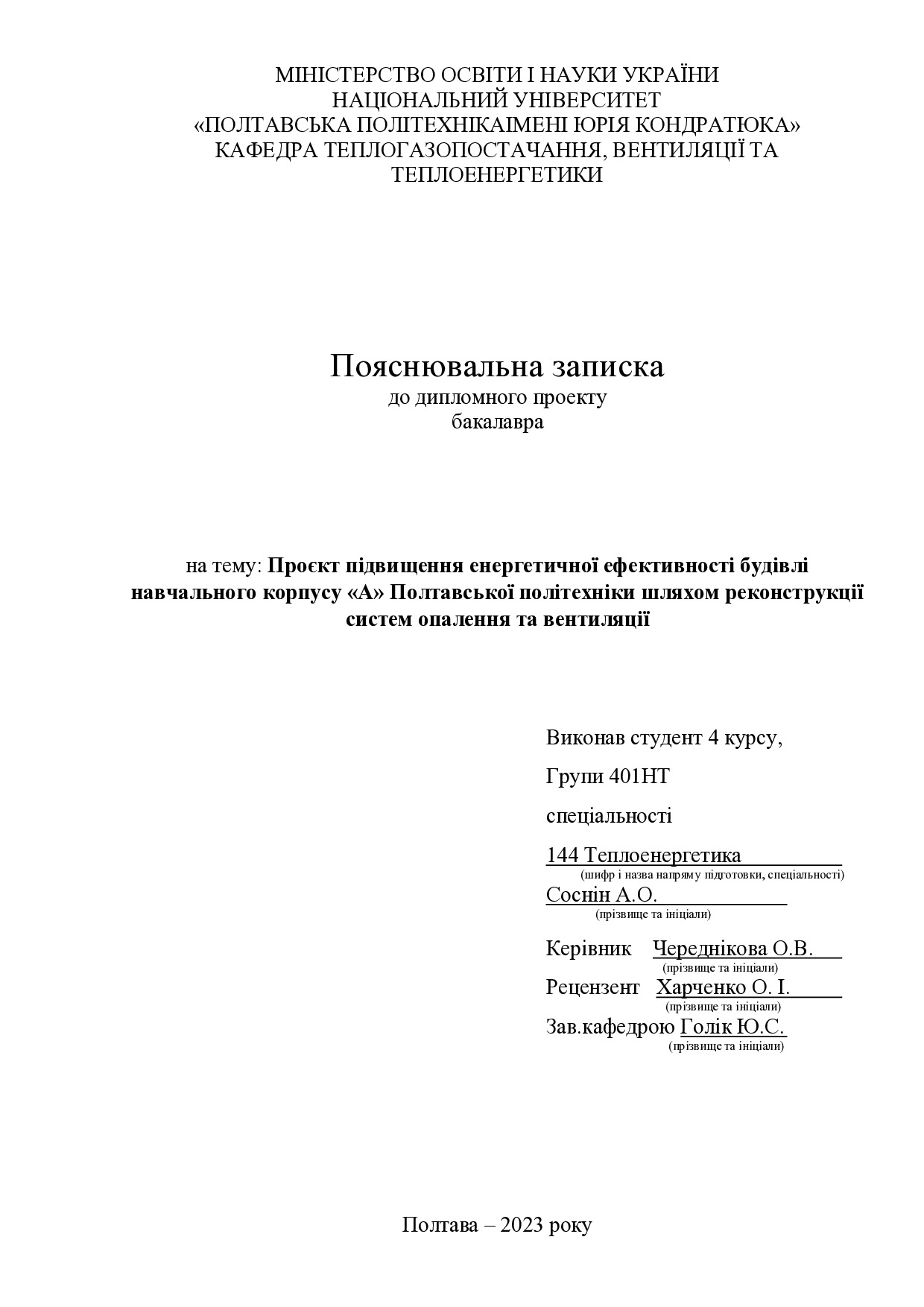 Проєкт підвищення енергетичної ефективності будівлі навчального корпусу «А» Полтавської політехніки шляхом реконструкції систем опалення та вентиляції
