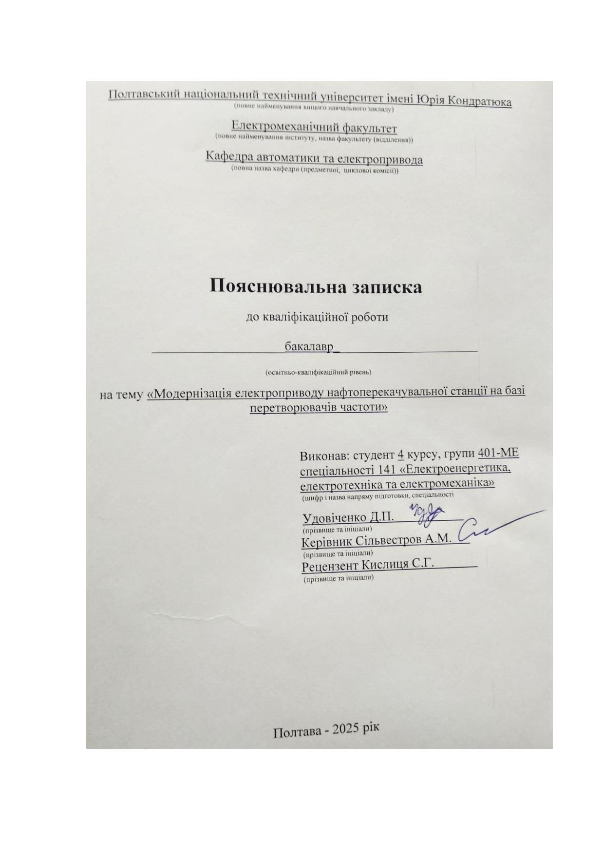 Модернізація електроприводу нафтоперекачувальної станції на базі перетворювачів частоти