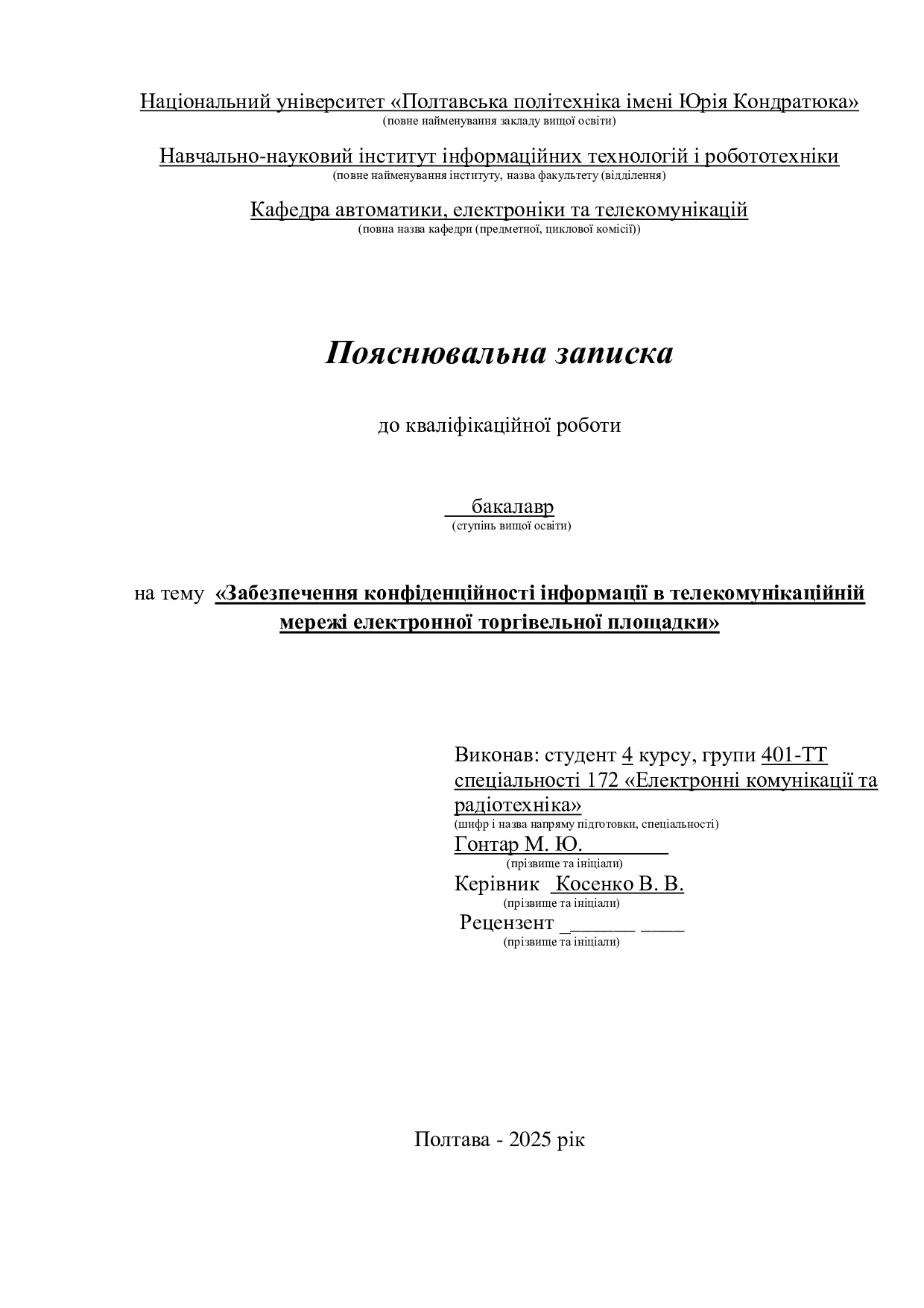 Забезпечення конфіденційності інформації в телекомунікаційній мережі електронної торгівельної площадки