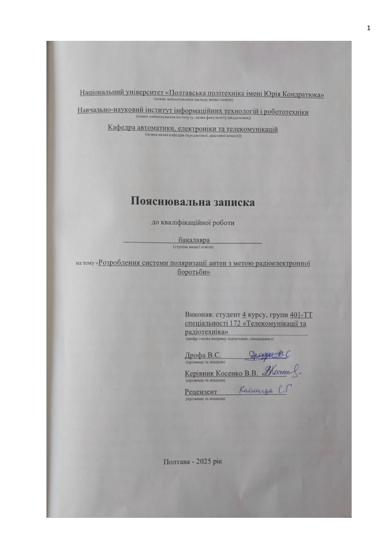 Розроблення системи поляризації антен з метою радіоелектронної боротьби