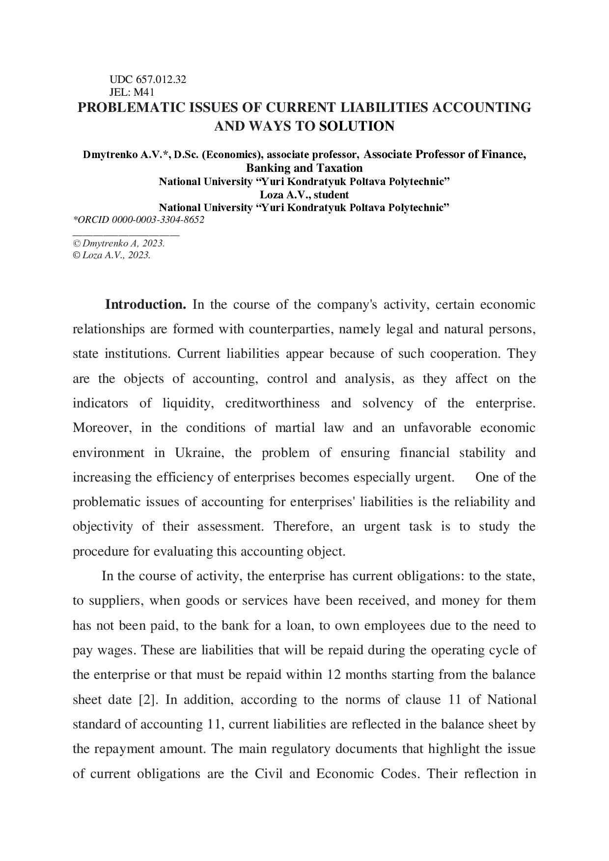 Problematic issues of current liabilities accounting and ways to solution
